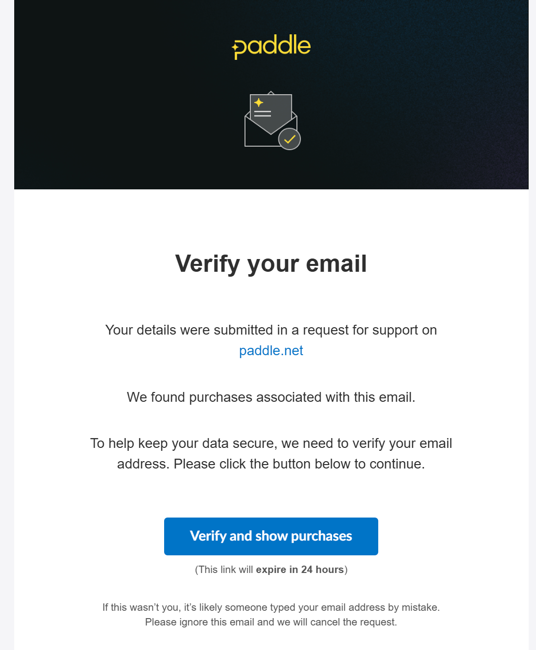 4. 메일함을 열어보면 메일 와있음. 여기서 Verify and show purchases 클릭