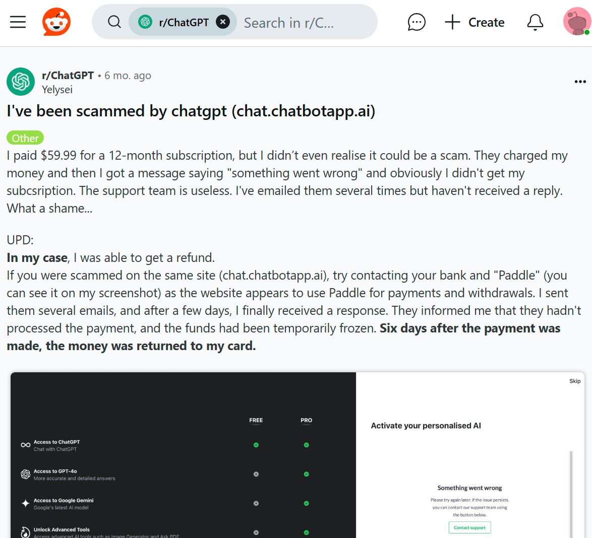 레딧에 올라온 피해자 글을 보니 이미 반 년 전 글이었음.