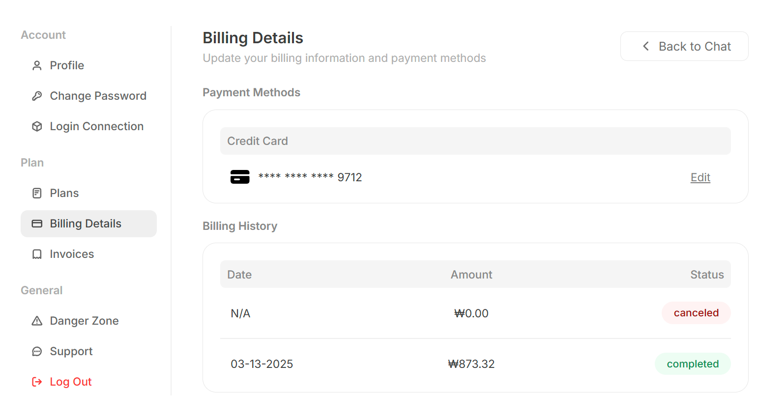 10. 해당 사이트 재 접속하여 내 계정 상태를 보면 구독이 취소되어있는 것을 확인할 수 있음.